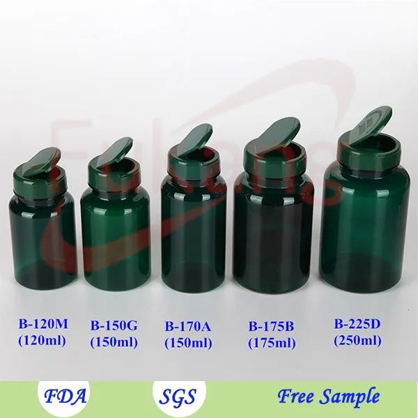 B-170A 150ml帶有翻蓋的PET塑料藥瓶,定制綠色