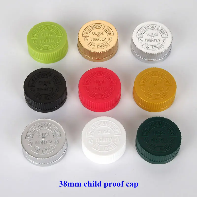 塑料38毫米gloden彩色PP CRC蓋,38毫米兒童塑料耐藥品蓋,塑料瓶